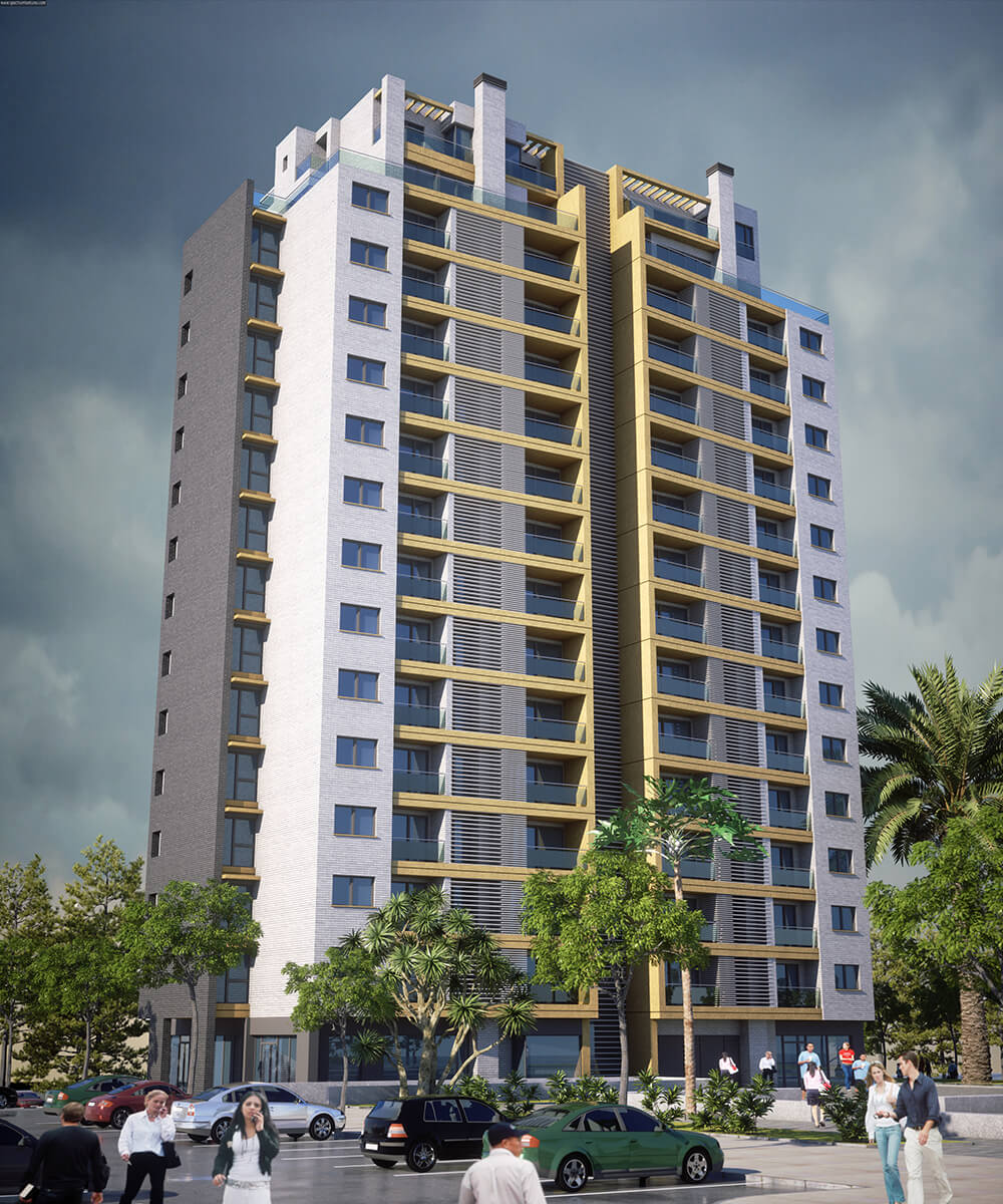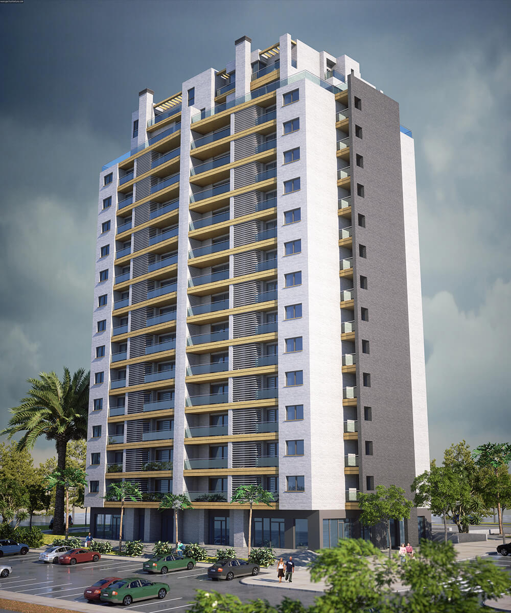 Proyecto para la ejecución de 56 viviendas de 2, 3 y 4 dormitorios desarrolladas en 14 plantas, aparcamiento en 3 niveles de sótanos y locales comerciales en planta baja.