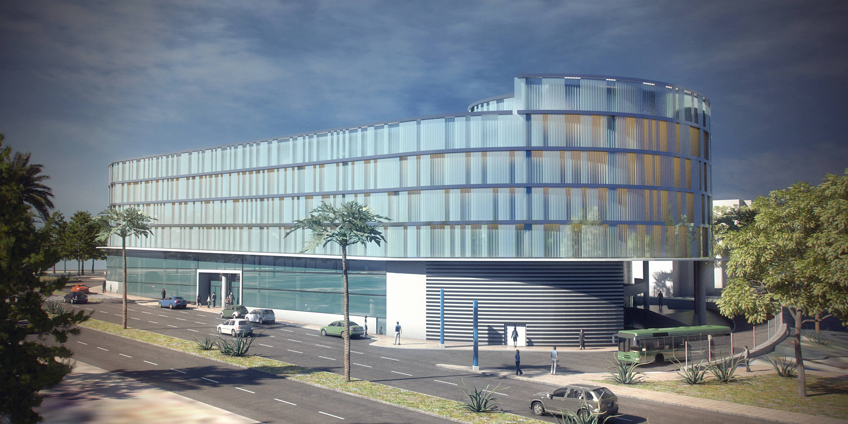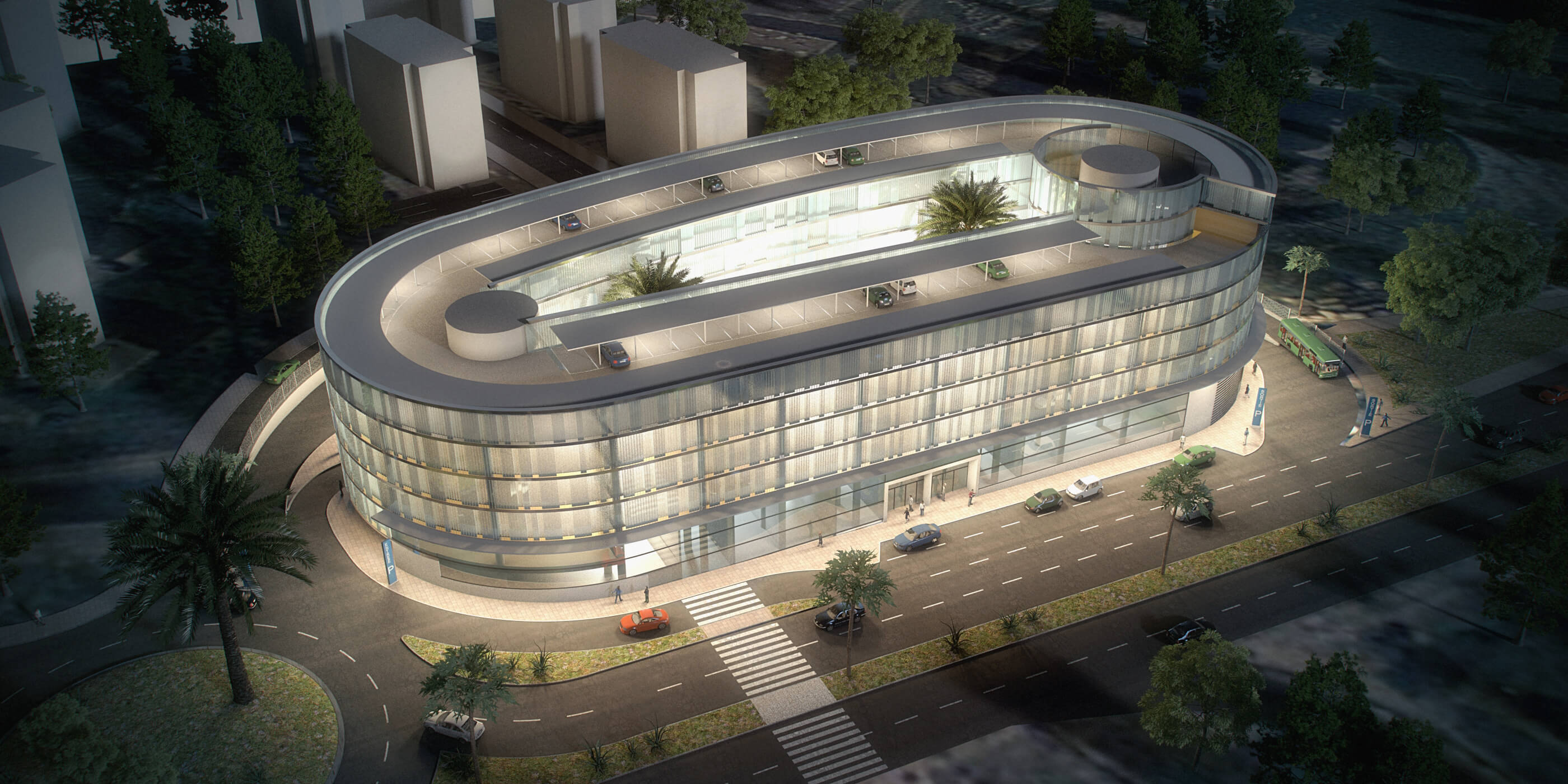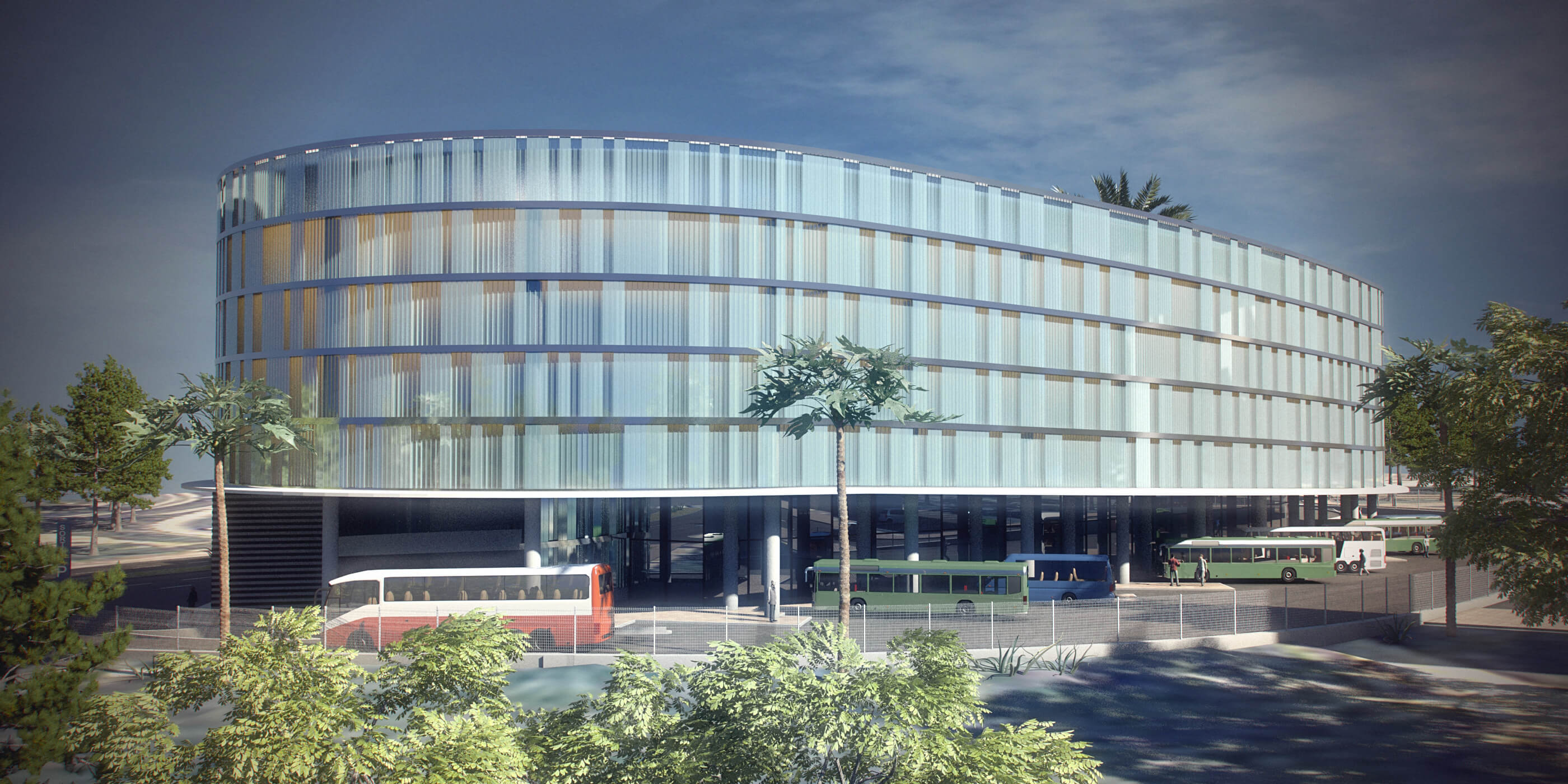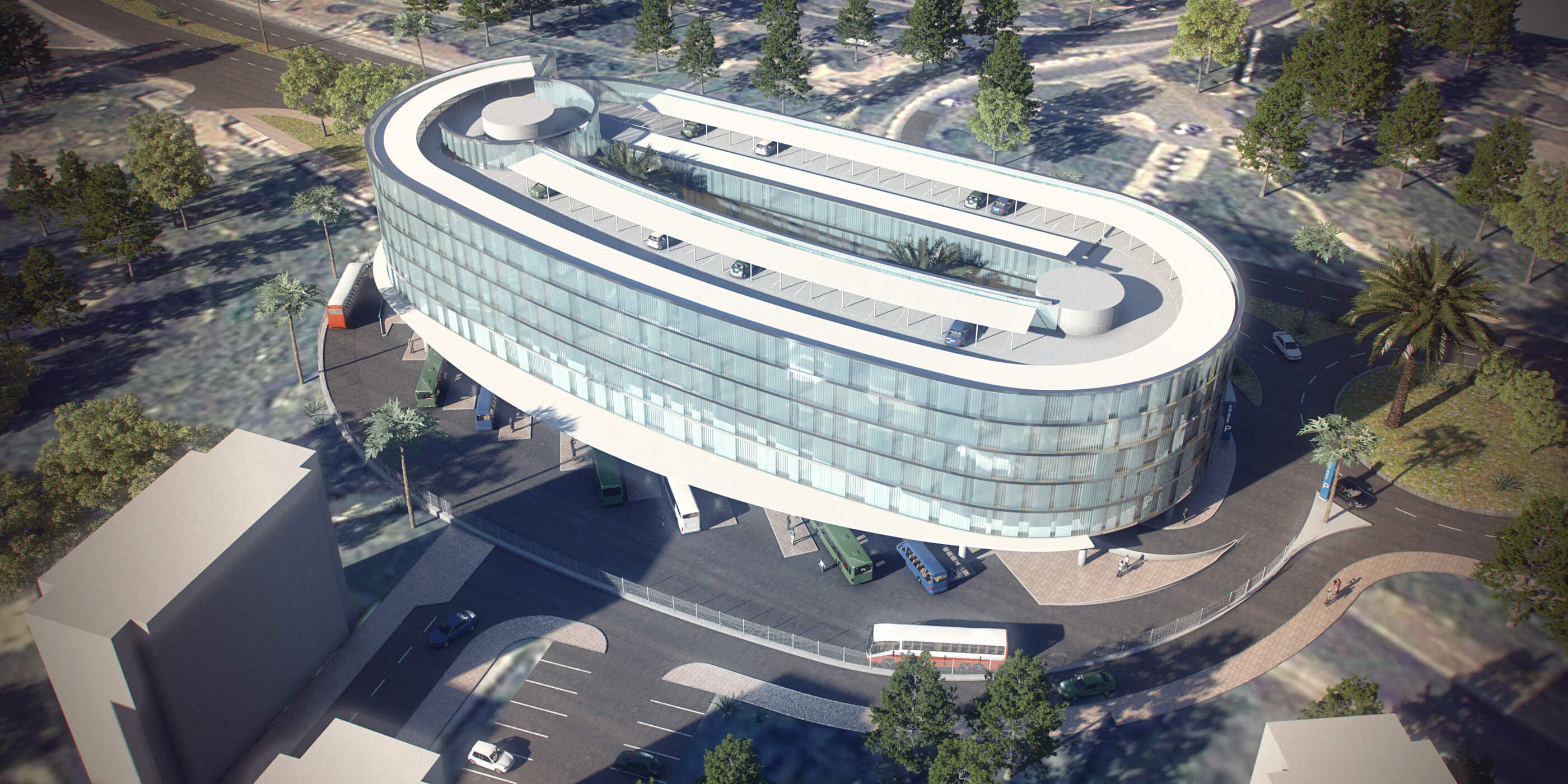 El proyecto destinado a aparcamiento público de vehículos y estación de autobuses de media distancia consta de planta baja, 4 niveles sobre rasante y un último nivel de terraza.