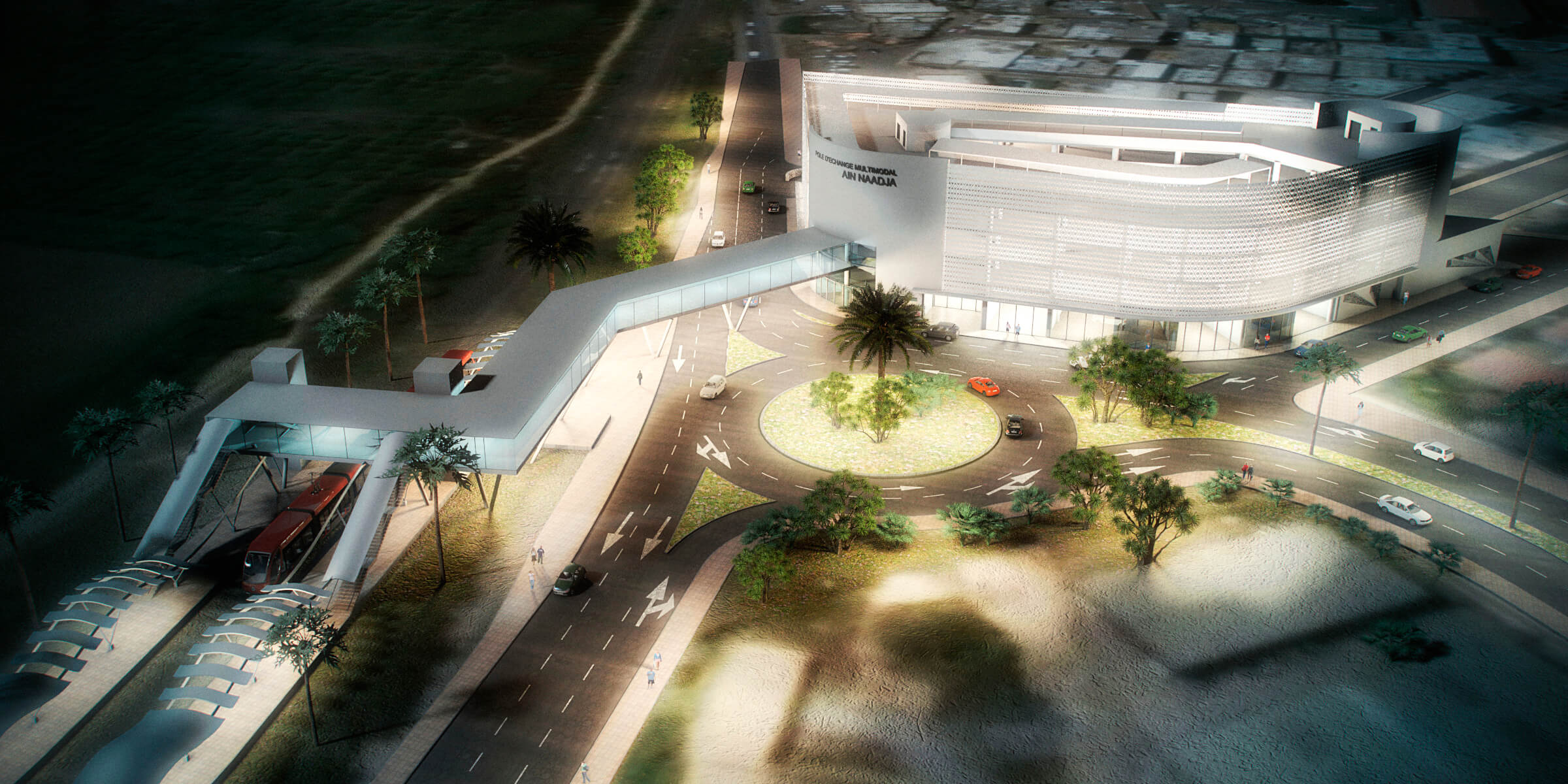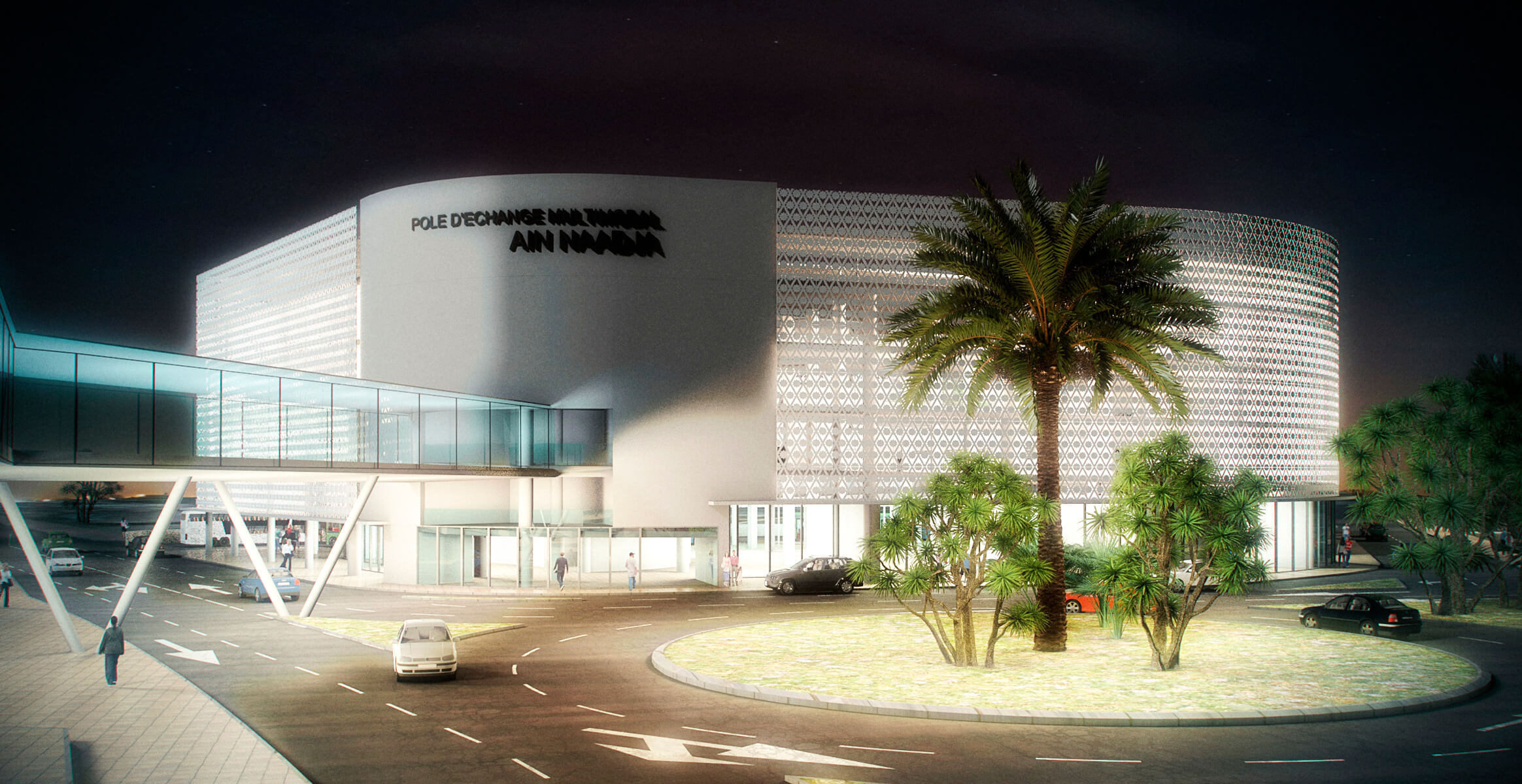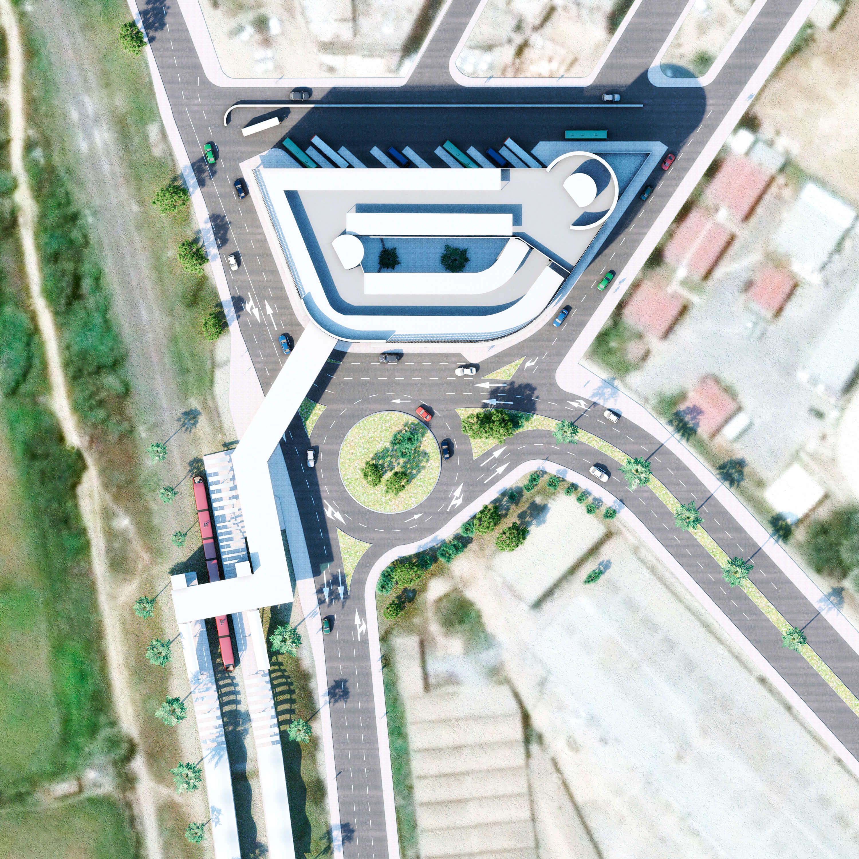El proyecto esta destinado a estación de intercambio de autobuses de media y larga distancia con la estación del ferrocarril. En la planta baja se ubican las dársenas de autobuses (9 en total), el acceso principal, zonas de espera y las áreas comerciales y de locales de restauración; así como la entrada y salida de vehículos del aparcamiento ubicado en las plantas superiores.