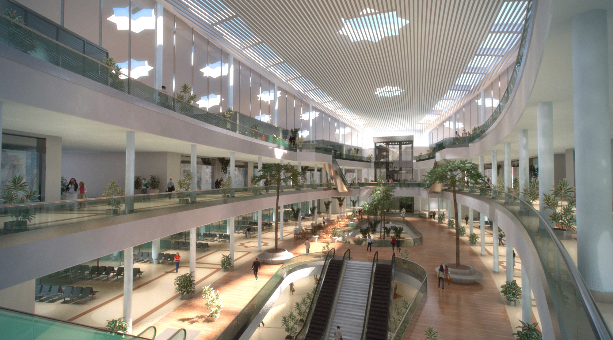 Superficie construida total: 54.024,71 m2. Superficie urbanizada: 32.550,00 m2 El proyecto consta de tres áreas claramente definidas: Los niveles +1 y +2 se corresponde con la zona comercial y administrativa del complejo.