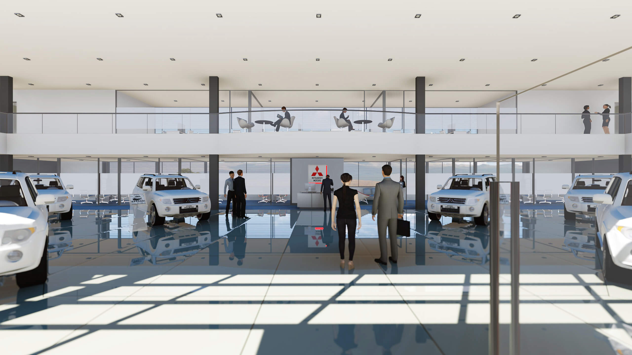 Por debajo de la planta baja se disponen 3 niveles de entresuelo orientados hacia la parte más baja del terreno. La planta baja está destinada a exposición y puestos de atención al público, mientras que en el entrepiso, la planta primera y dos niveles de entresuelo se ubican oficinas administrativas y de gestión. En el entresuelo de nivel -3 está la zona de entrega de vehículos.