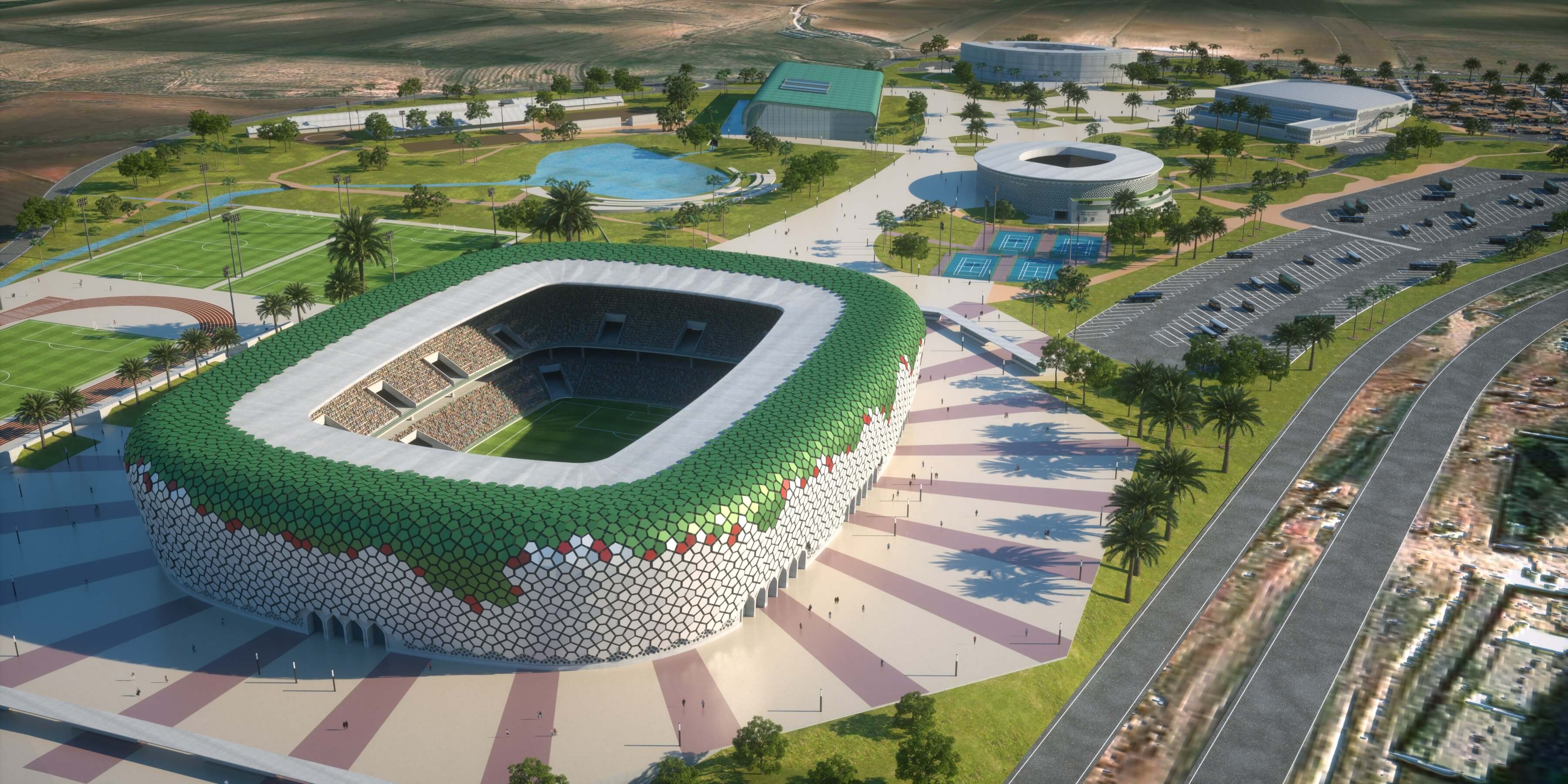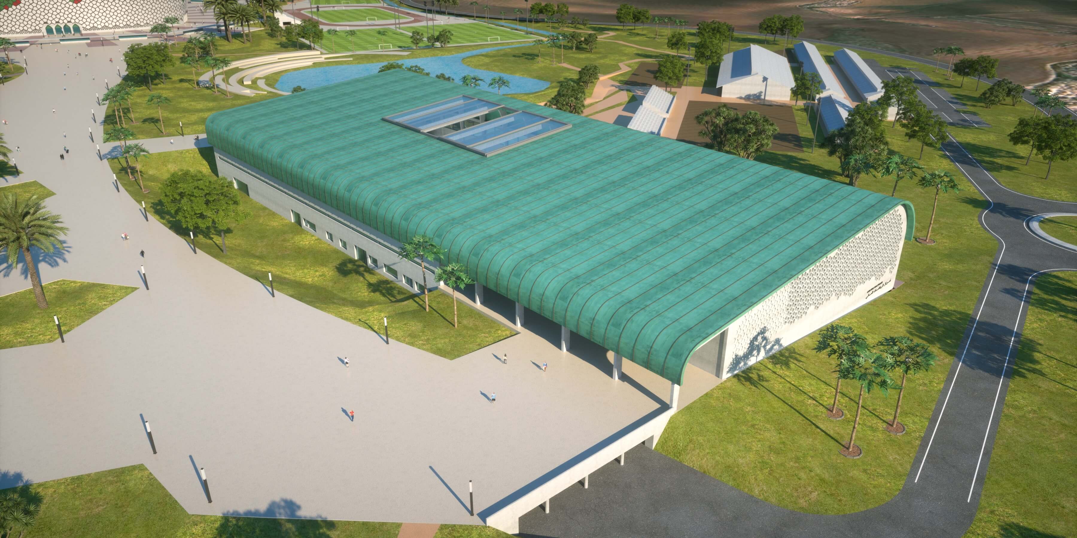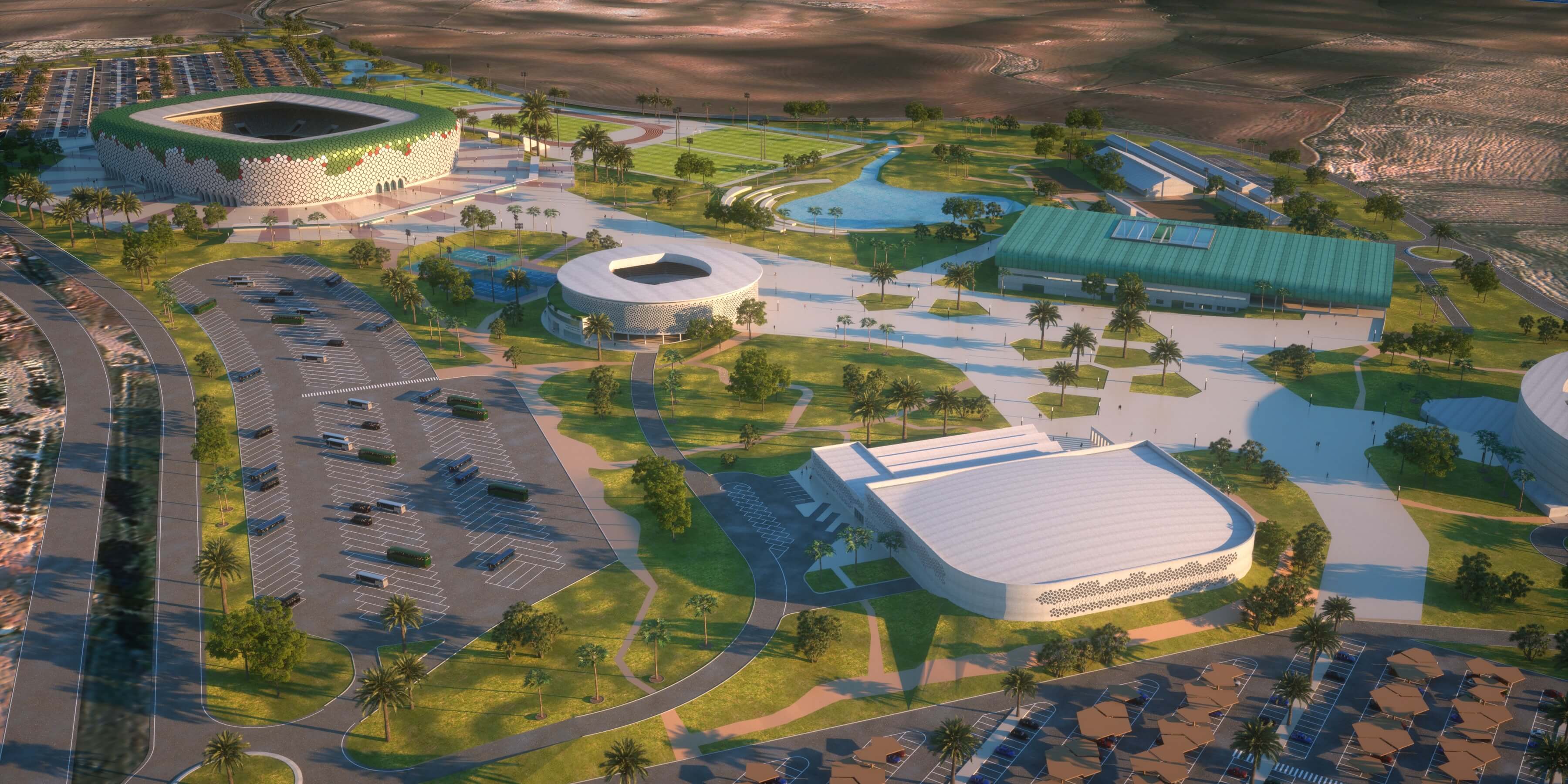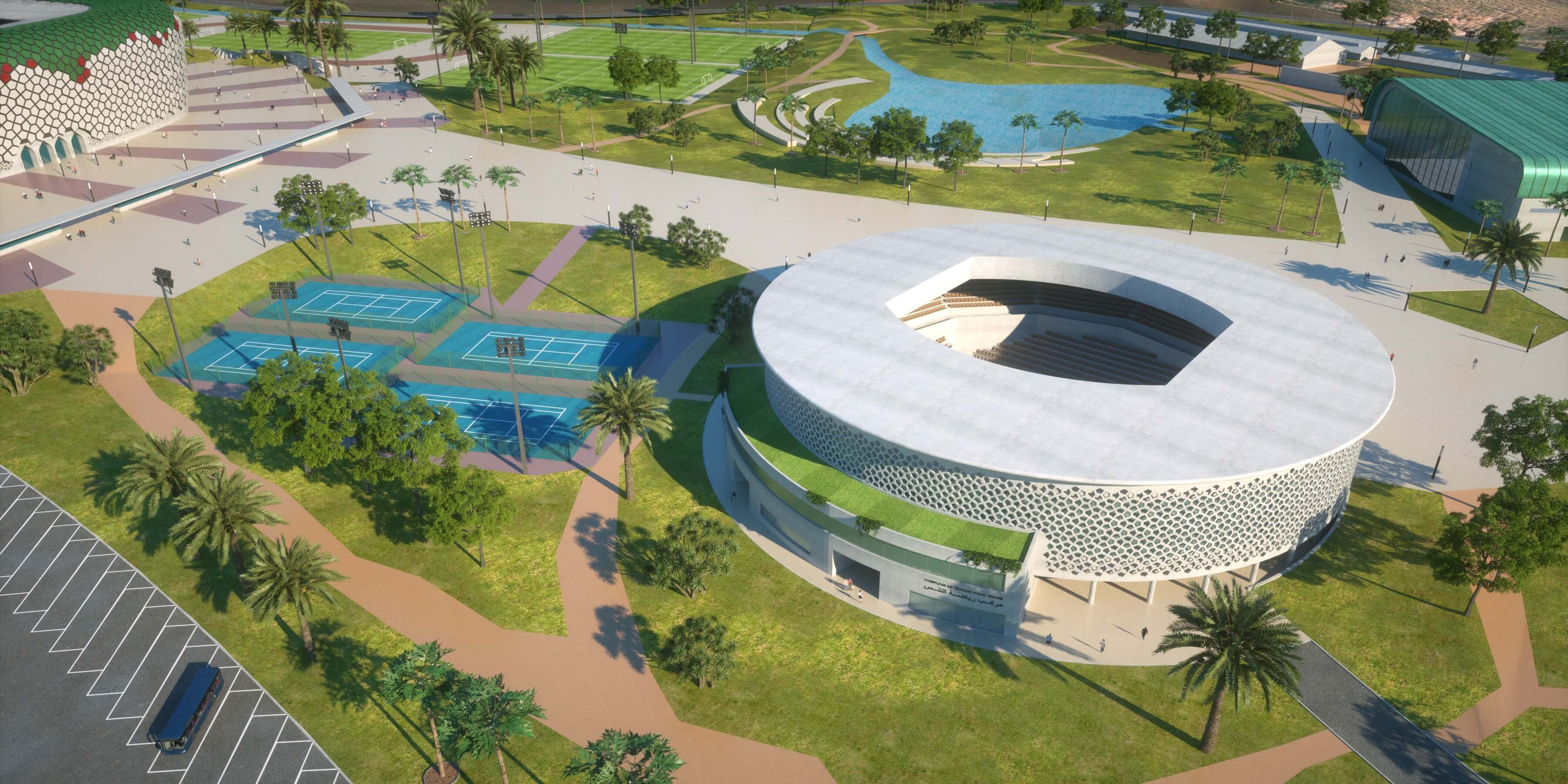 Sobre una parcela de 80 hectáreas se proyecta un complejo polideportivo integral. Estadio de futbol cubierto cumpliendo reglamentación FIFA con capacidad para 50.000 personas y pistas auxiliares de entrenamiento. Centro náutico cubierto para práctica de natación con una pileta olímpica y otra para saltos con gradas con capacidad para 3.000, otra piscina de 25 metros de longitud con gradas para 600 personas.