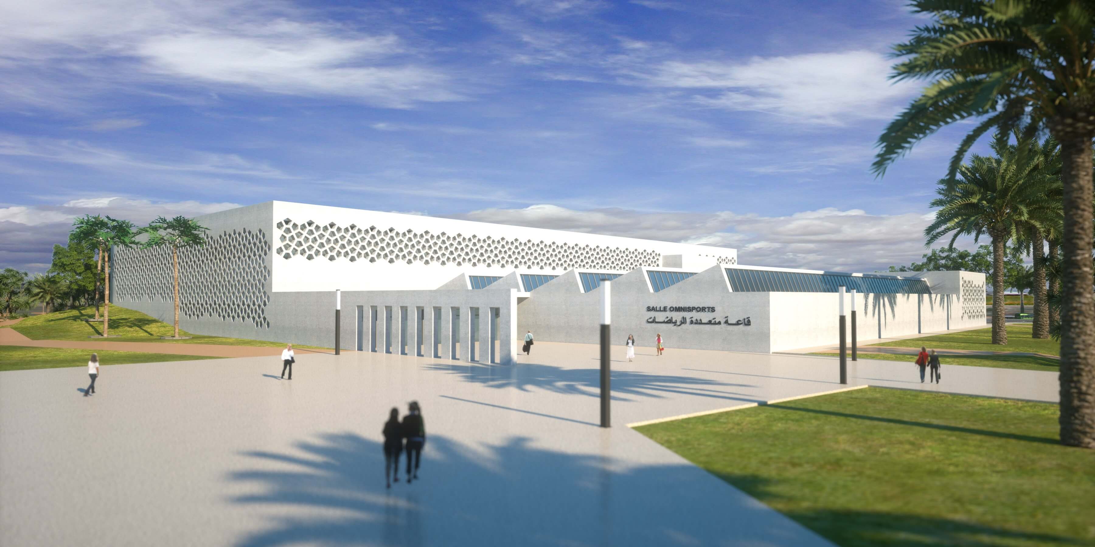 Edificio omnisports cubierto con gradas para público con capacidad 5.000 personas destinado a la práctica y competición de distintos deportes (baloncesto, vóley, hándbol, etc). Estadio semicubierto para competición de tenis con gradas para 4.000 personas y 4 canchas exteriores. Villa Olímpica para deportistas con 100 habitaciones. Áreas verdes de esparcimiento, zonas de aparcamiento, edificios administrativos y servicios complementarios.